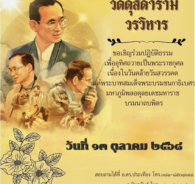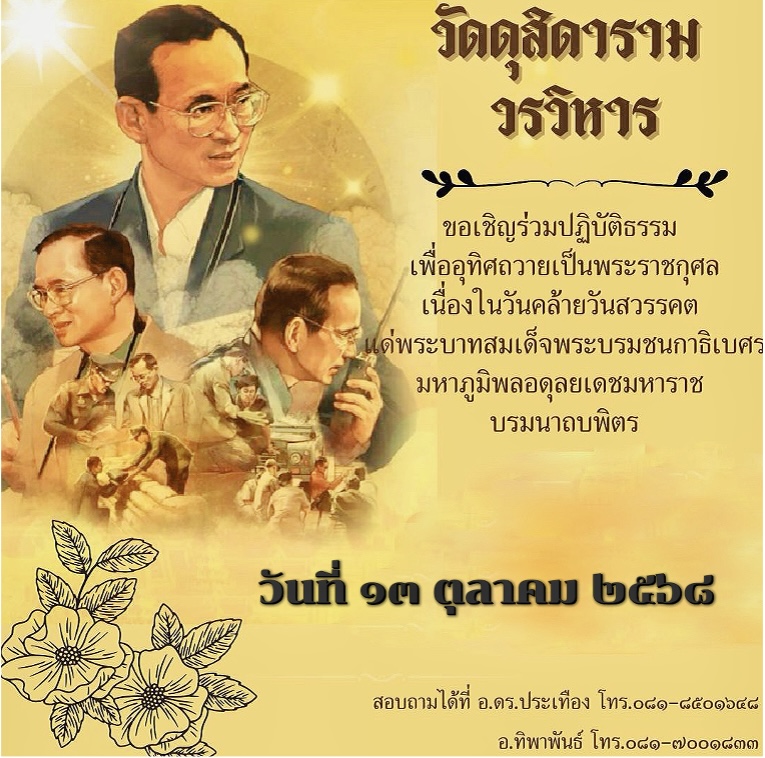 ขอเชิญร่วมปฏิบัติธรรมเพื่ออุทิศถวายเป็นพระราชกุศล เนื่องในวันคล้ายวันพระราชสมภพในหลวงรัชกาลที่ ๙ ระหว่าง ๕-๘ ธันวาคม ๒๕๖๒ ณ วัดดุสิดาราม วรวิหาร #ปฏิบัติธรรม #เพื่อพ่อหลวง #พ่อของชาวไทย #พ่อแห่งแผ่นดิน #ถวายเป็นพระราชกุศล #ธรรมตามรอยพ่อ #ทำดีเพื่อพ่อ